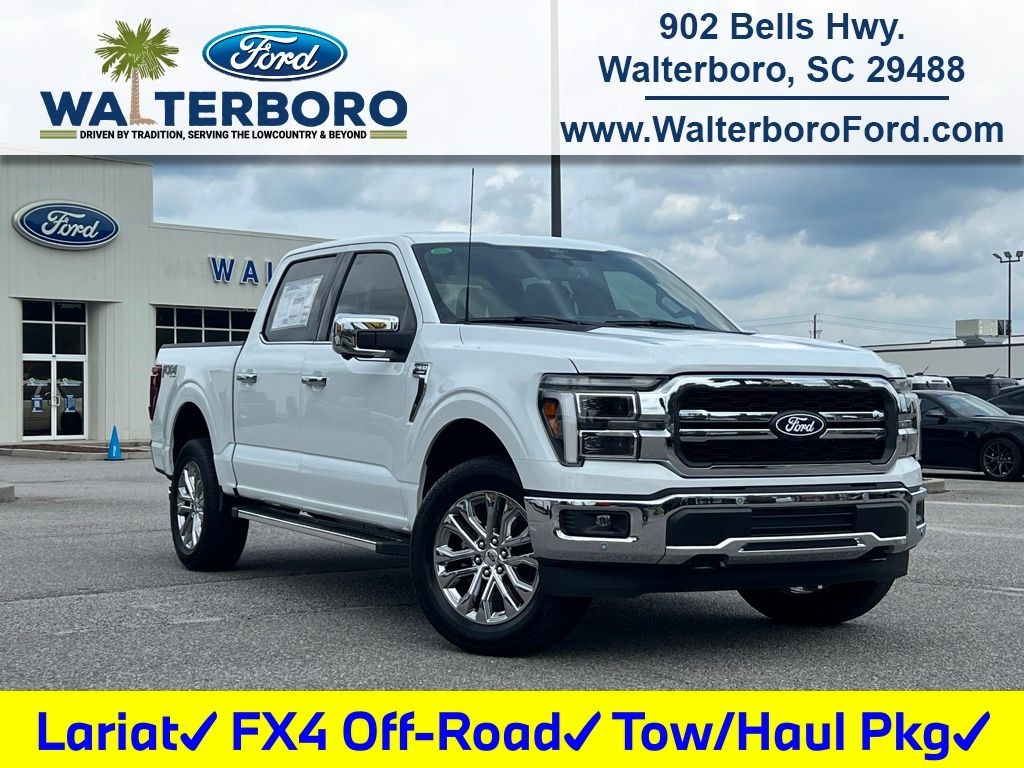 F-150 Lariat 4x4 w/ FX4 Off-Road Pkg, 4D SuperCrew, 5.0L V8, 10-Speed Automatic, 4WD, Oxford White, 4x4 FX4 Off-Road Bodyside Decal, 6" Angular Bright Anodized Step Bar, 8 Speakers, ActiveX Trimmed Bucket Seats, Adjustable pedals, Air Conditioning, AM/FM radio: SiriusXM with 360L, Auto High-beam Headlights, Automatic temperature control, Chrome wheels, Compass, Delay-off headlights, Electronic Locking w/3.31 Axle Ratio, Equipment Group 501A Mid, Front Bucket Seats, Front dual zone A/C, Front fog lights, Fully automatic headlights, FX4 Off-Road Package, Heated front seats, Heated steering wheel, Hill Descent Control, Illuminated Driver & Passenger Visors, Integrated Trailer Brake Controller, Memory seat, Monotube Rear Shocks, Off-Road Tuned Front Shock Absorbers, Pedal memory, Power driver seat, Power-Sliding Rear Window, Radio: B&O Sound System by Bang & Olufsen, Rock Crawl Mode, Speed control, Steering wheel mounted audio controls, SYNC 4 w/Enhanced Voice Recognition, Tow/Haul Package, Tray Style Floor Liner w/o Carpet Mats, Ventilated front seats, Wheels: 20" Chrome-Like PVD.