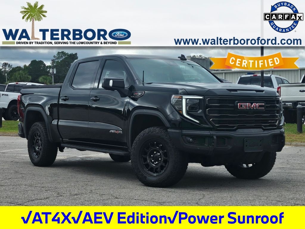 *ONE OWNER*, *CARFAX CERTIFIED*, *NAVIGATION/NAV/GPS*, *BACKUP CAMERA*, *BLIND SPOT ASSIST*, *APPLE CARPLAY*, *ANDROID AUTO*, *METICULOUS SERVICE RECORDS*, *SERVICE RECORDS AVAILABLE*, *VEHICLE INSPECTED*, *RECENT OIL SERVICE*, *COMPLETELY DETAILED*, *BLUETOOTH, Hands-Free*, *PORTABLE AUDIO CONNECTION*, Sierra 1500 AT4X AEV Edition, 4D Crew Cab, EcoTec3 6.2L V8, 10-Speed Automatic, 4WD, Onyx Black, Obsidian Rush w/Full Grain Leather Seat Trim, 120-Volt Bed Mounted Power Outlet, 120-Volt Instrument Panel Power Outlet, 1st & 2nd Row AEV All-Weather Floor Liners (LPO), 2 Charge/Data USB Ports Inside Center Console, 2 Type-C Charge-Only Rear USB Ports, 2 USB Ports, AEV Branded Front Head Restraints, AEV Stamped-Steel Rear Bumper, AEV Tailgate Decal w/Exterior Badging, Apple CarPlay/Android Auto, AT4X AEV Edition, Auto High-beam Headlights, Bed View Camera, Bose Premium Series w/12-Speaker System, Color-Keyed Carpeting Floor Covering, Compass, Deep-Tinted Glass, Delay-off headlights, Driver-Selectable Full-Locking Front Differential, Driver-Selectable Full-Locking Rear Differential, Electric Rear-Window Defogger, Electrical Steering Column Lock, Floor-Mounted Center Console, Front fog lights, Front Prem Floor Liners w/Removable Carpet Insert, Front Rainsensing Wipers, Fully automatic headlights, Gloss Black Door Handles, Gloss Black Header w/Drk Nickel Grille Insert Bars, GMC Connected Access Capable, HD Surround Vision, Heated 2nd Row Outboard Seats, Heated Driver & Front Outboard Passenger Seating, Heavy-Duty Air Filter, Hill Descent Control, Hitch Guidance, Hitch Guidance w/Hitch View, In-Vehicle Trailering App, Integrated Trailer Brake Controller, Keyless Open & Start, LED Cargo Area Lighting, Multicolor 15" Diagonal Head-Up Display, MultiPro Audio System by Kicker (LPO), Navigation System, OnStar & GMC Connected Services Capable, Perimeter Lighting, Power Door Locks, Power Front Passenger Windows w/Express Up/Down, Power Front Windows w/Driver Express Up/Down, Power Rake & Telescoping Steering Column, Power Rear Windows w/Express Down, Power Sliding Rear Window w/Rear Defogger, Power Sunroof, Preferred Equipment Group 4SG, Push Button Start, Rear Cross Traffic Braking, Rear Pedestrian Detection, Rear Prem Floor Liners w/Removable Carpet Insert, Rear Wheelhouse Liners, Remote Vehicle Starter System, Rocker Protection (LPO), SiriusXM w/360L, Spray-On Pickup Bed Liner w/AT4X Logo, Steering Wheel Audio Controls, Theft Deterrent System (Unauthorized Entry), Trailer Camera Provisions, Trailer Side Blind Zone Alert, Trailer Tire Pressure Monitor System, Trailering Package, Ultrasonic Front & Rear Park Assist, Universal Home Remote, Ventilated Driver & Front Passenger Seats, Wheels: 18" x 8.5" 12-Spoke High Gloss Black Alum, Wi-Fi Hotspot Capable, Wireless Charging, Wireless Phone Projection.